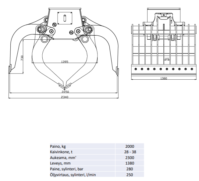 Purkukoura / lajittelukoura G 25 (28…38 t) 2000 kg